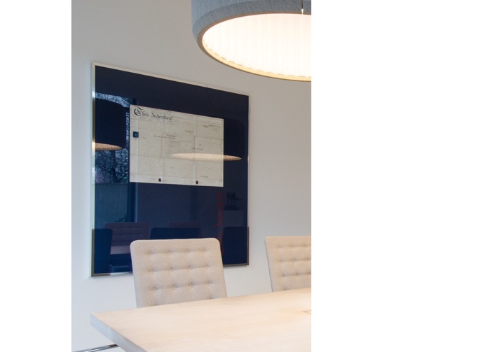 Der Besprechungsraum für das Notariat der Kanzlei Dr. Krafczyk & Partner, hat mit neuen Möbeln und Leuchten ein neues, zeitgemäßes Gesicht bekommen. Die Leuchten sorgen nicht nur für ein angenehmes Licht auf dem sonderangefertigten Tisch aus massiver Eiche und für eine vertrauensvolle Atmosphäre, gleichzeitig verbessern sie auch wie die Stühle die Raumakustik des vormals sehr schallharten Raumes.