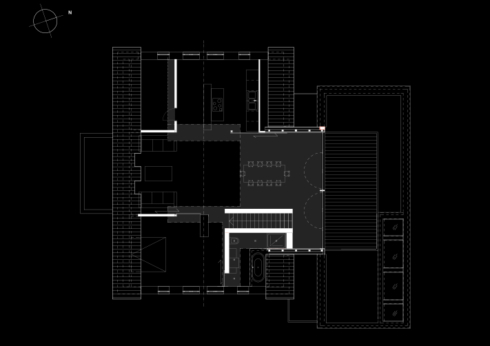 Die Dachwohnung N.16 befindet sich in einer zum Wohn- und Kanzleigebäude umgebauten und durch einen Anbau ergänzten alten Remise. Die Erschließung erfolgt über das im Neubau befindliche Treppenhaus und führt über den, in der Fuge zwischen Neubau und Altbau befindlichen Balkon, zu einem eigenen Eingang. Eine gerade, einläufige Treppe führt wie eine Himmelsleiter in die lichtdurchflutete Wohnung unterm Dach.
